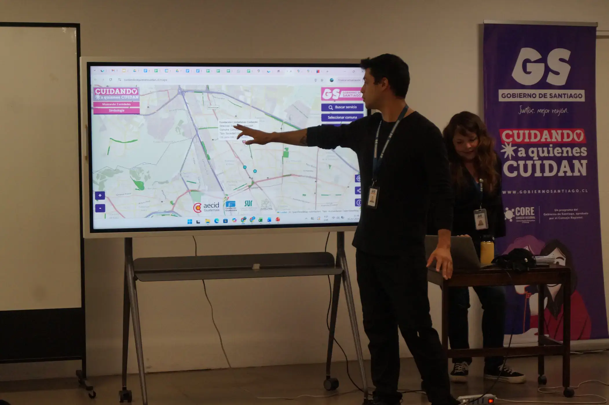 Posteriormente, se realizó una presentación de la página web del programa Cuidando a Quienes Cuidan, con el objetivo de que las asistentes de limpieza conozcan esta herramienta y puedan difundirla entre las personas cuidadoras que acompañan semanalmente, facilitando el acceso a información, beneficios y contenidos del programa.